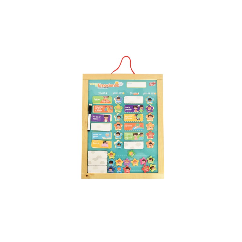 Contiene: 1 tablero, 15 fichas de actividades, 25 fichas de emociones y 1 plumón base agua.