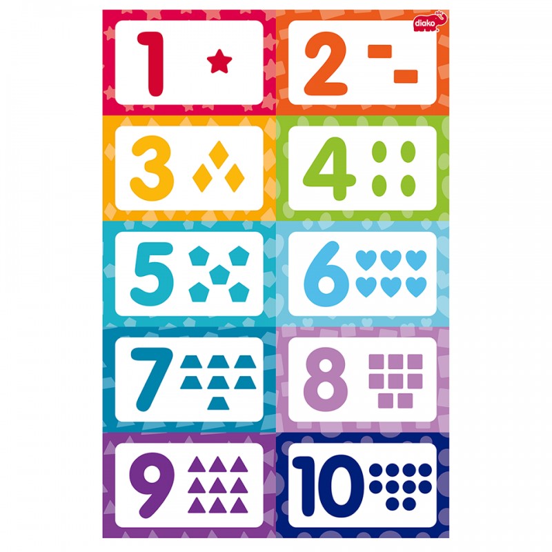Lámina plastificada impresa por ambos lados. Por un lado contiene los números del 1 al 10 y por el otro los números del 1 al 100. Puedes escribir sobre ellas con un marcador para pintarrón y al finalizar borrar con una tela húmeda.
