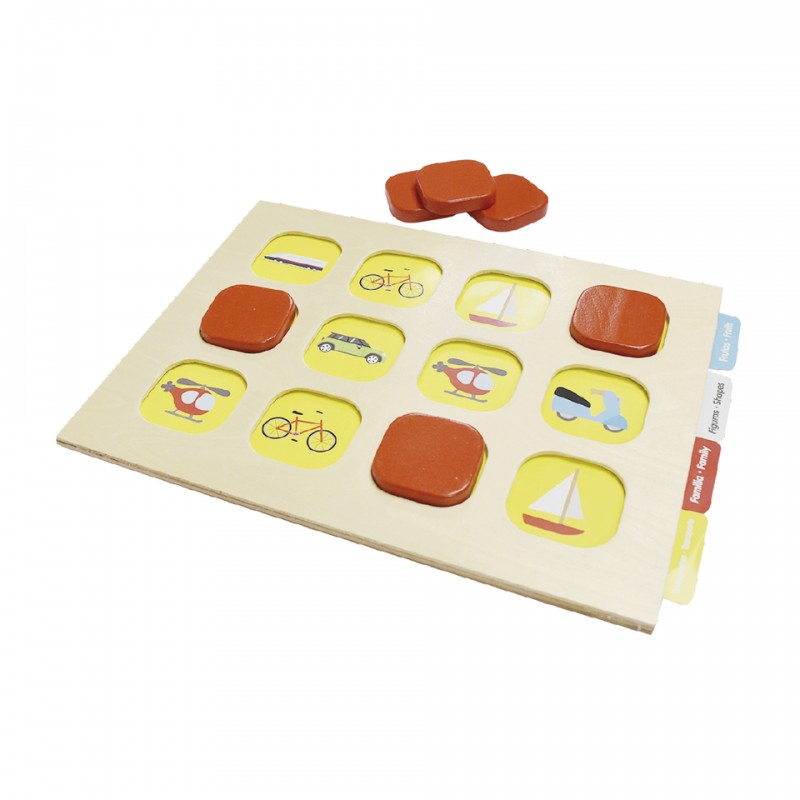 Contiende : 1 tablero, 12 fichas y 4 plantillas de juego doble vista.
