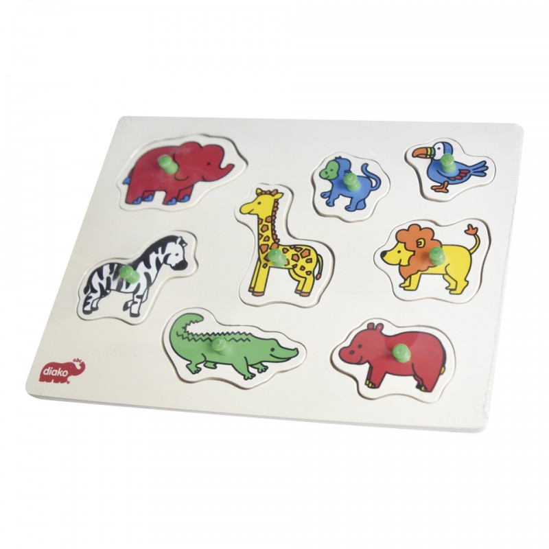 Rompecabezas de madera con pija para facilitar el agarre de la pieza y la soltura de la muñeca al aprender a escribir. Ayuda a mejorar y fortalecer las habilidades motoras finas, estimula el desarrollo de la coordinación ojo-mano, lenguaje y la imaginación.
