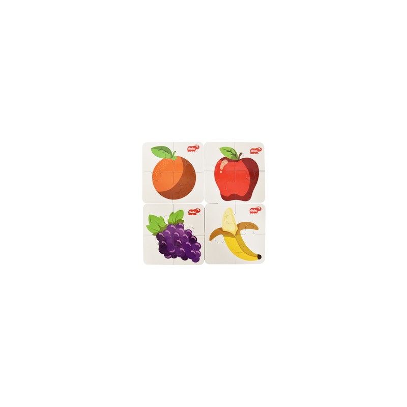 Son 4 rompecabezas con la figura de una fruta diferente y de 4 piezas cada uno. Ayuda a la introducción del rompecabezas, a identificar colores, apoya en la asociación de figuras y disminuye el estrés. Ideal para los más pequeños.