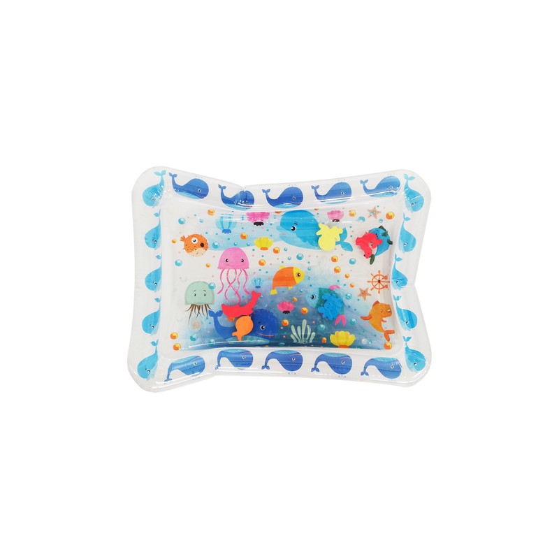 Tapete inflable que se rellena con agua, contiene divertidos animales del mundo acuático. ¡Cuando el bebé presiona e intenta tomar los animalitos se moverán de un lugar a otro! Se puede usar en interiores y exteriores.