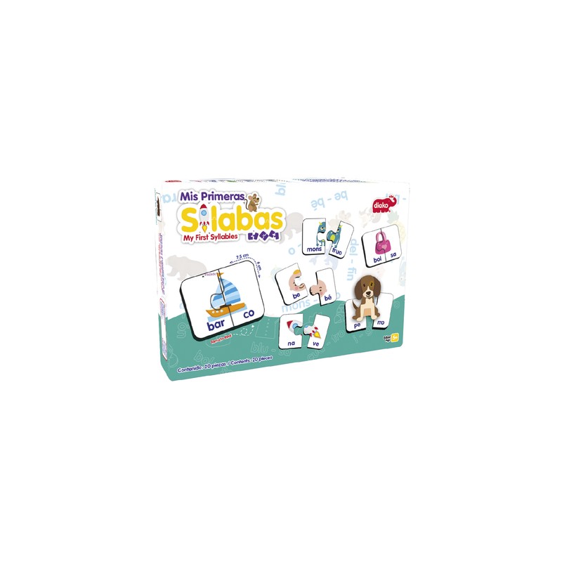 Tarjetas de cartón en forma de rompecabezas que ayudan al aprendizaje lectura, desarrolla el lenguaje y la concentración, asociación y atención. Con este juego aprenderás palabras que contienen dos sílabas.