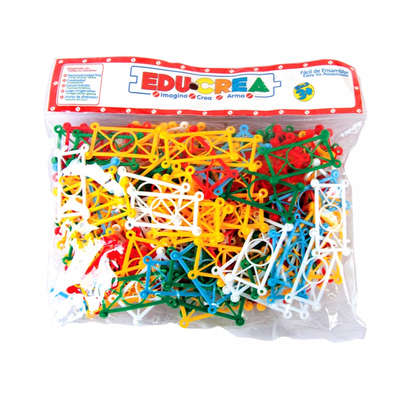 Juego de ensamble con piezas de plástico flexible que se unen entre sí para crear distintas formas.Crea los diseños que tu imaginación te permita. Desarrolla las habilidades estratégicas, la coordinación ojo-mano, la psicomotricidad fina y la imaginación.