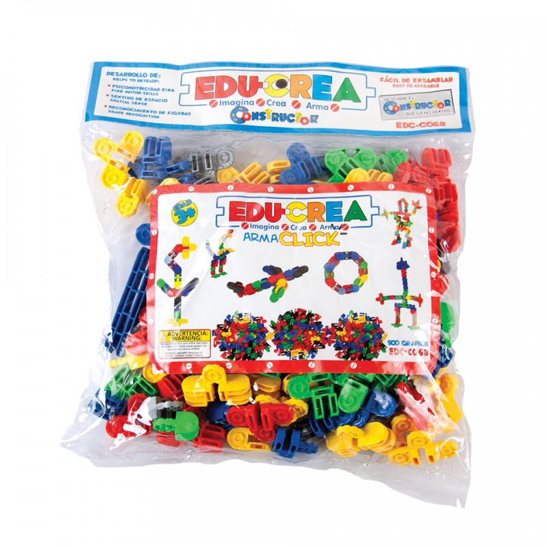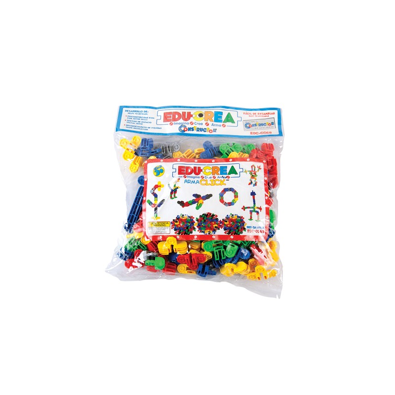 Juego de ensamble con piezas de plástico rígido que simulan una pinza y se unen entre sí con un "clic" para formar cadenas. Crea los diseños que tu imaginación te permita. Desarrolla las habilidades estratégicas, la coordinación ojo-mano, la psicomotricidad fina y la imaginación.