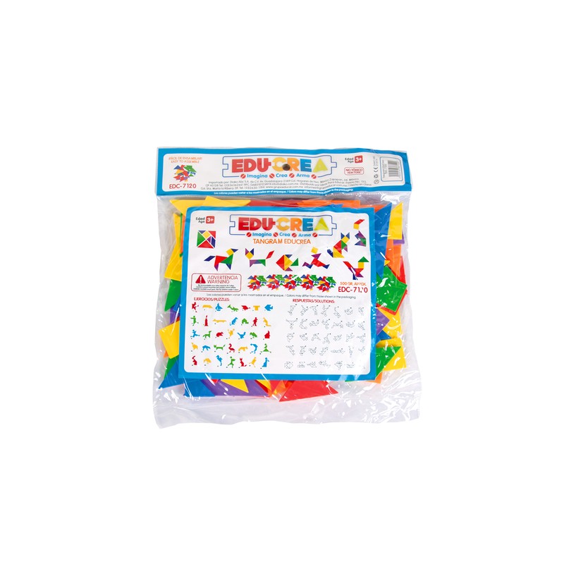 Tangram con piezas de plástico para armar distintas figuras. Ayuda en el aprendizaje de formas y figuras, los colores y el desarrollo matemático. Crea los diseños que tu imaginación te permita.